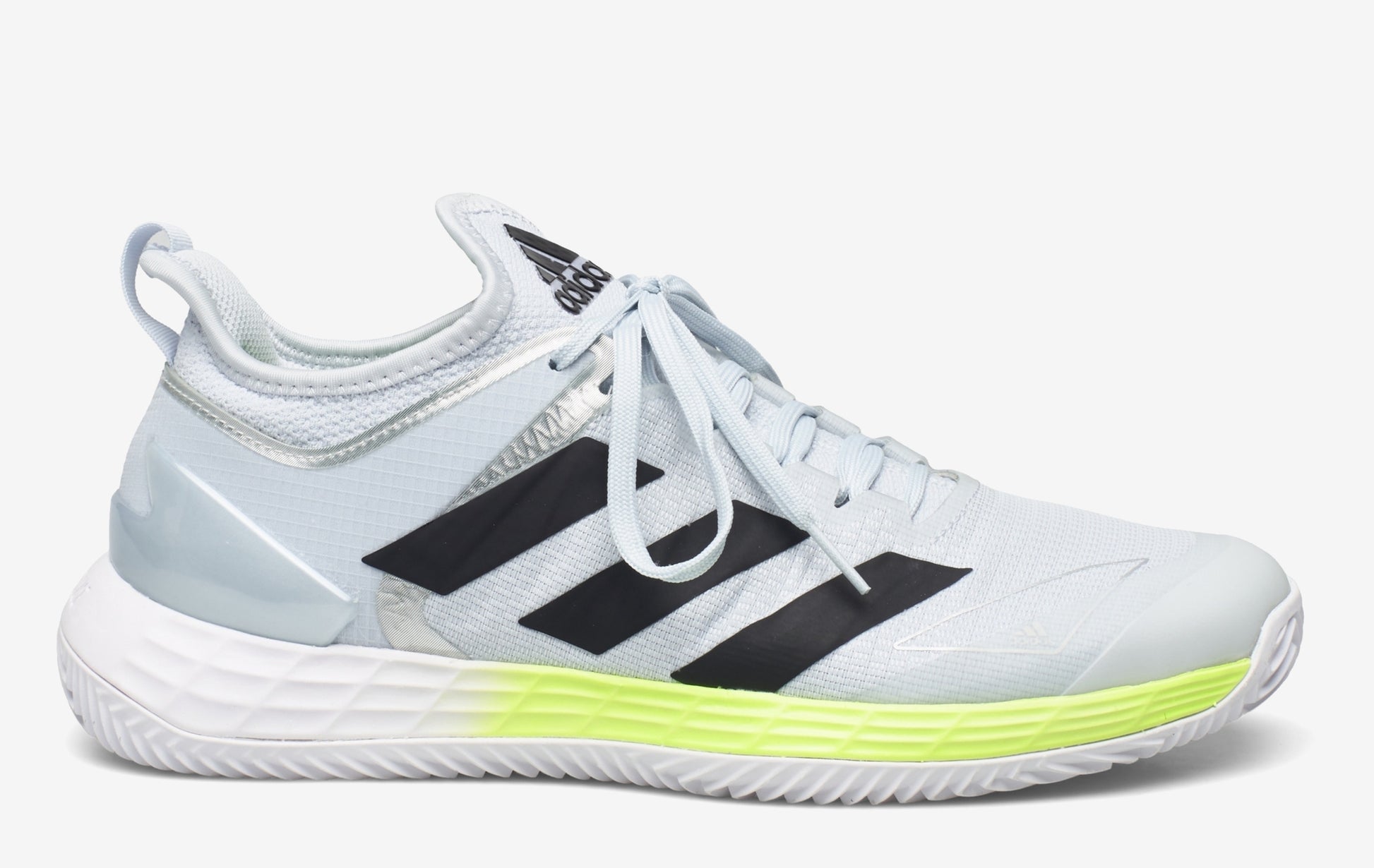 Designed to stand out on the clay, these adidas Adizero Ubersonic 4 tennis shoes get you to the ball faster. The stretch-woven upper and external heel clip strap you in for explosive sprints while internal reinforcements add lateral stability. A low-profile Lightstrike midsole and grippy Adiwear outsole help with reaction times.